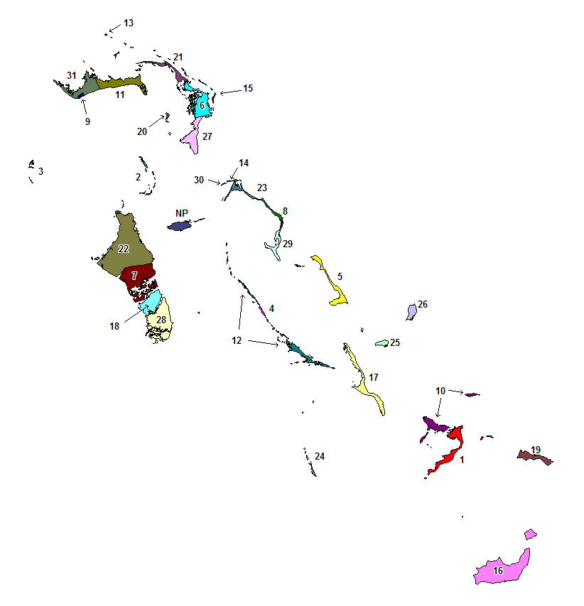 Mapa Bahamów Mapa Bahamów Lokalizacja Bahamów Mapa Bahamów Mapa hipsometryczna Bahamów Mapa podziału Bahamów na dystrykty