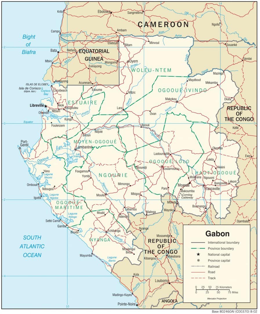 Mapa Gabonu Mapa Gabonu Lokalizacja Gabonu na tle Afryki Mapa fizyczna Gabonu Mapa transportowa Gabonu Mapa polityczna Gabonu Mapa hydrograficzna Gabonu Mapa topograficzna Gabonu