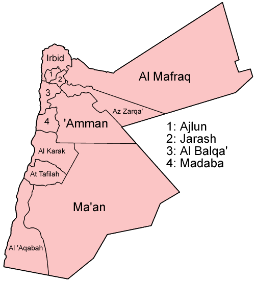 Mapa Jordanii Mapa Jordanii Lokalizacja Jordanii Mapa fizyczna Jordanii Mapa transportowa Jordanii Mapa podziału Jordanii na Muhafazy Mapa topograficzna Jordanii