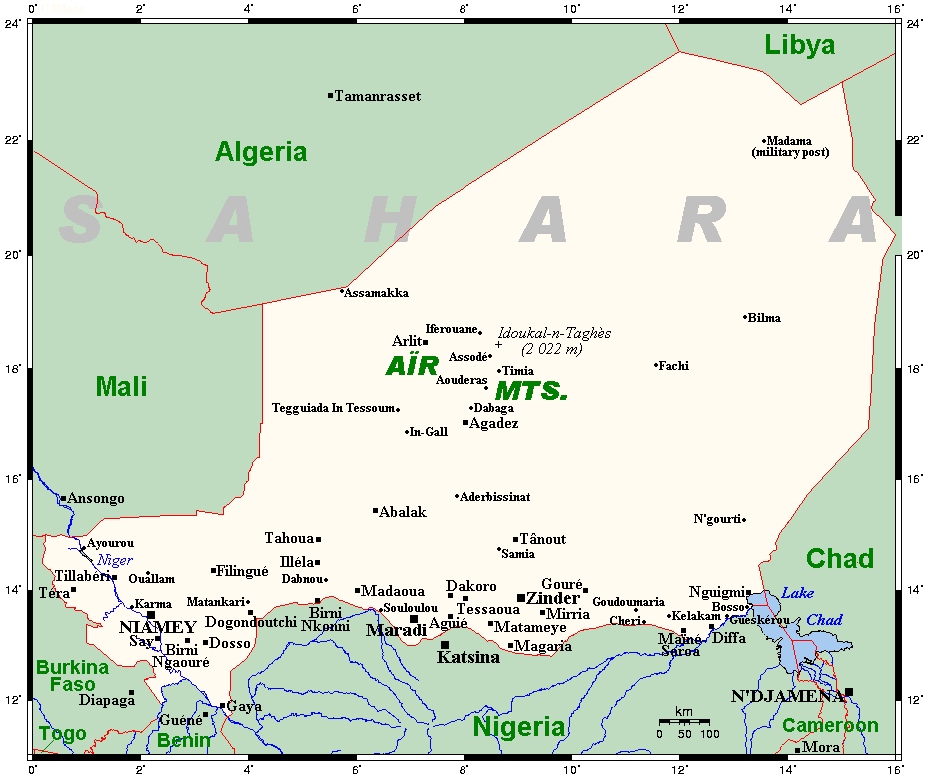 Mapa Nigru Mapa Nigru Lokalizacja Nigru na tle Afryki Mapa fizyczna Nigru Mapa transportowa Nigru Mapa podziału administracyjnego Nigru Mapa Nigru Mapa topograficzna Nigru