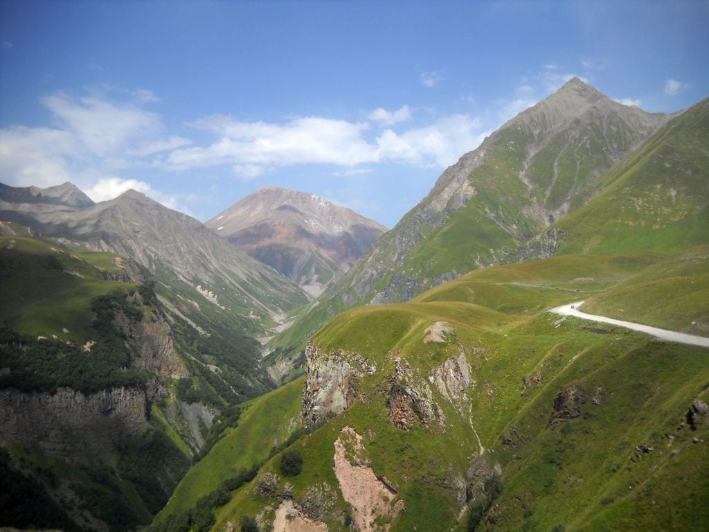 Oczywiście droga z Szatili przez góry dostarczyła nam kolejnych skoków adrenaliny. Niemal tak samo kręta jak dojazd do Omalo, zaskoczyła nas dodatkowo widokiem marszrutki, która musiała się ześlizgnąć ze zbocza i jako malowniczy wrak pozostawiona została na poboczu. Kolejny dzień był niemniej obfity w piękne widoki i kręte drogi. Gruzińska Droga Wojenna z panoramami Wysokiego Kaukazu i stadami krów, które estakady wybrały na najdogodniejsze miejsca do odpoczynku, staje mi przed oczyma do dziś.